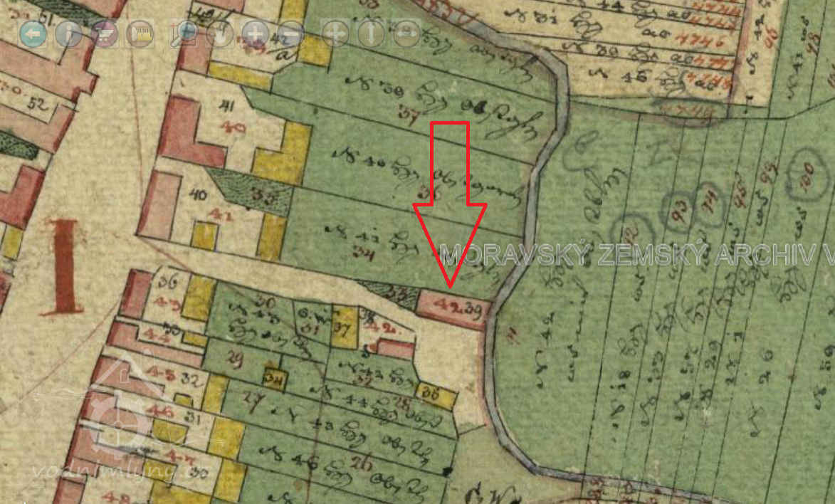 1760 Tereziánský katastr - Andreas Dundáček, mlýn s 1 složením a kašíkem (krupníkem), u mlýna 28 měřic polí