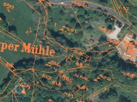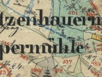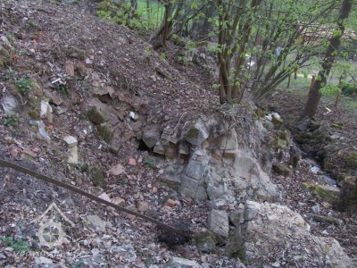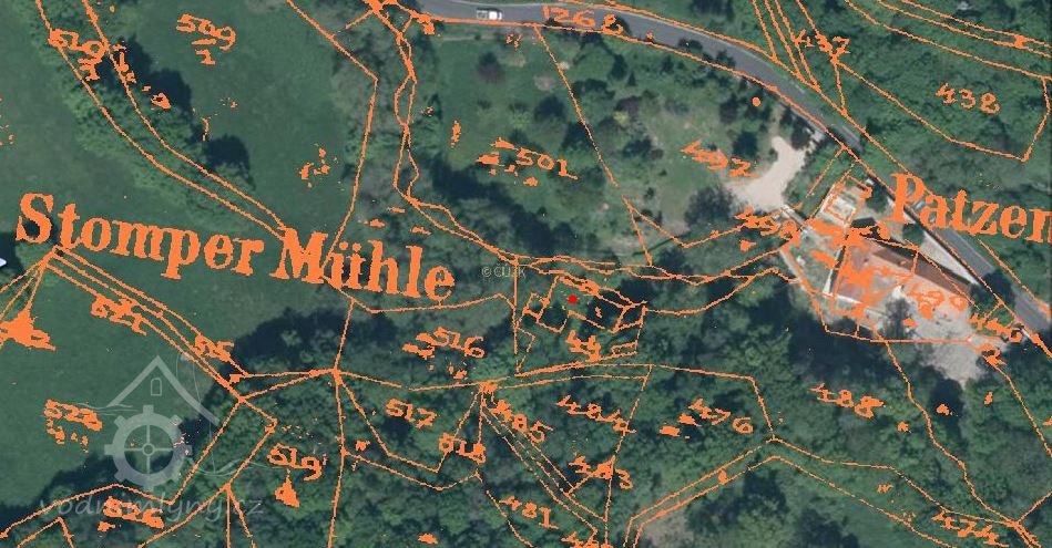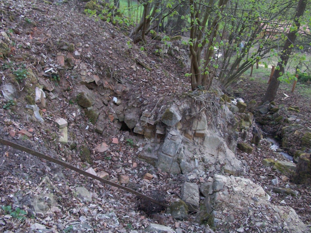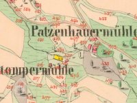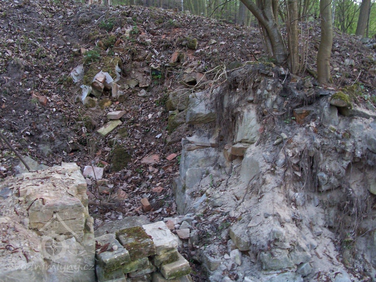 Zbořený mlýn nyní nacházející se na pozemku sousedního proti proudu položeného Patzenhauerova mlýna.