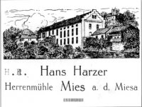 V roce 1898 koupil mlýn Wilhelm Harzer, který po svatbě roku 1899 zapsal polovinu mlýna na manželku Marii. Wilhelm Harzer byl synem Johanna Harzera, účetního ze Stříbra, který se později stal majitelem mlýna Všech svatých (Allerheiligenmühle) ve Vrbici u Stříbra. S manželkou Marií měl nejméně 3 děti – Margarethu, Richarda a Jana Nepomuka.