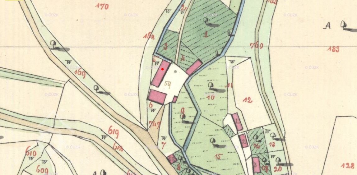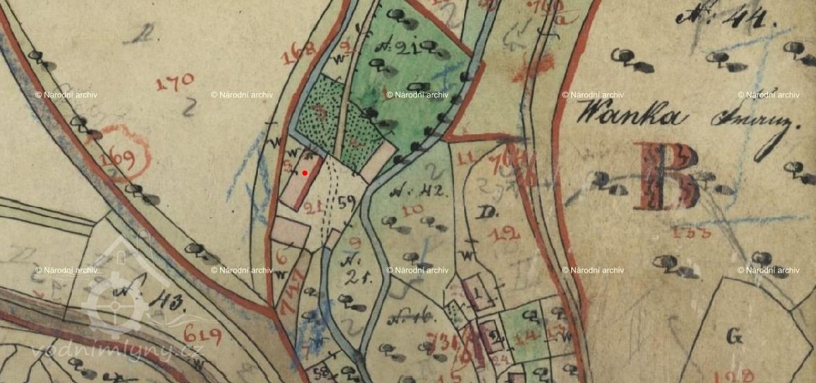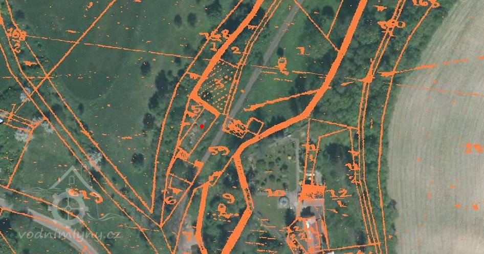 PopisV roce 1930 zde bylo 1 kolo na vrchní vodu, průtok 0,048 m3/s, spád 5,8m, výkon 2,9HP