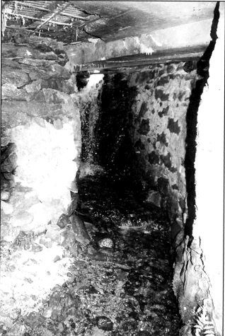 Letecký snímek z roku 1958 ukazuje zřícené budovy.