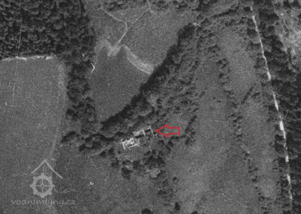 Na leteckém snímku z roku 1958 je mlýn zaznamenán jako zřícenina dvou propojených budov pod hrází rybníka.