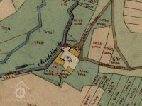 1) obytná část s mlýnicí 2) malá vodní elektrárna s pilou 3) hospod. budova 4) stodola 5) ohrazení s branou 6) mlýnský náhon