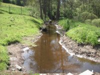 Náhon spadající pod areál mlýna, přivádí vodu ke mlýnu směrem od západu.