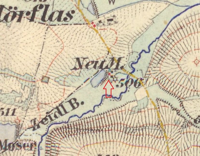 Přibližně od roku 1848 je v matrikách jako mlynář na Neumühle čp. 3 uváděn zeť předchozího mlynáře Wenzl Hüttl, který měl za manželku Marií, rozenou Träger. Wenzl Hüttl se narodil v prosince 1829, byl synem mlynáře Josefa Hüttla ze mlýna z Třískolup (Drissbloben) čp. 25 (později změněno na. 3) a Margarethy, rozené Gerstner.
