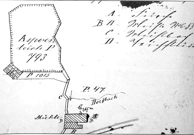 Při sčítání obyvatel v roce 1869 zde byl zapsán Karl Angermann (narozen 1832) s manželkou Margarethou (1834) a dětmi Josefem, Franzem Josefem, Annou, Magdalenou a Georgem. Žil zde také mlynářův otec Anton Angermann (1806), který byl vdovcem, a bratr Georg Agnermann, s živností rovněž mlynář, avšak pobývající právě v Americe. V hospodářství byl 1 valach, 7 kusů hovězího dobytka, 4 prasata a 2 úly.