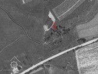 Na leteckém snímku z roku 1958 je vidět již jen hromada suti porostlá křovinami.