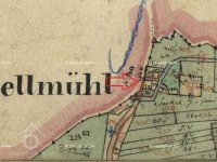 Na mapách stabilního katastru z roku 1838 je mlýn vyobrazen jako nevelká dřevěná stavba s jedním kolem. Jako mlynář je zde uváděn Johann Seckel.