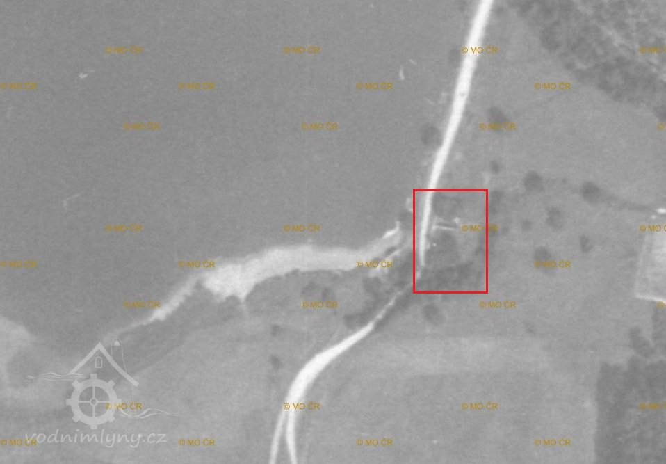 Na leteckém snímku z roku 1958 je místo, kde mlýn stával, zcela pusté a beze stop po mlýnu.