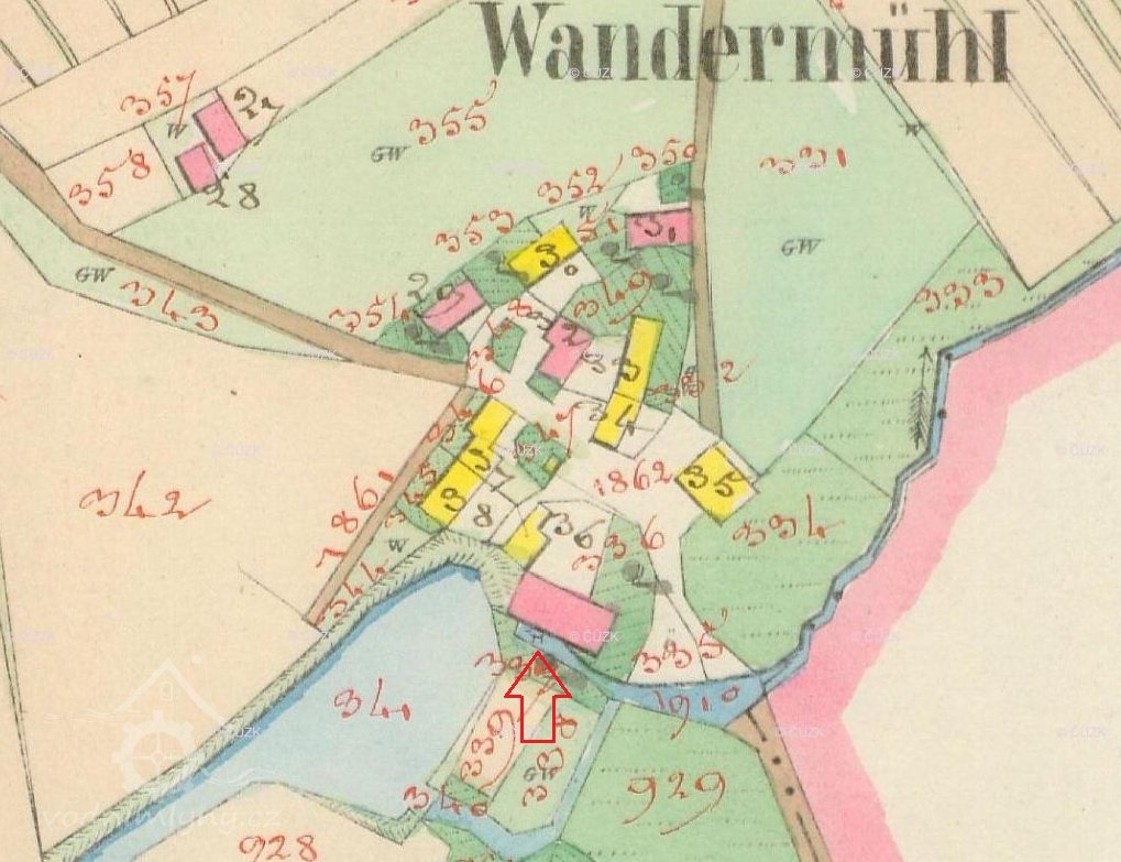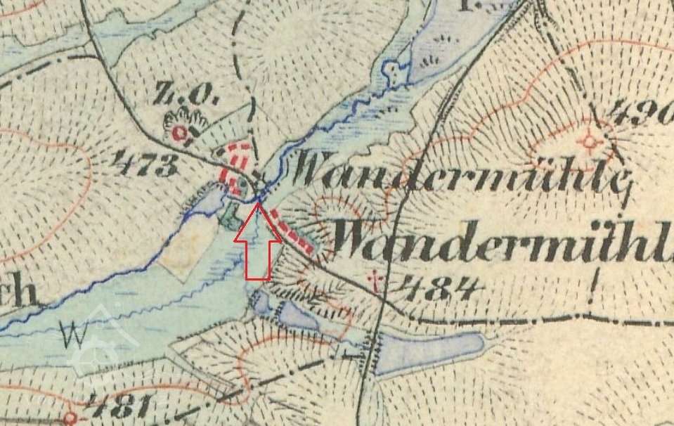Dle vodní zde v roce 1876 byl stále Johann Maier, mlýn měl tehdy 2 vodní kola na vrchní vodu o průměru 4,2 m.
