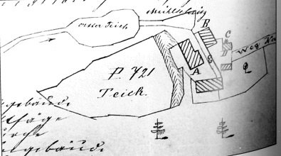 1838 – u mlýna byla pila, objekty mlýna a pily stály naproti sobě a byly napájeny vodou ze společné vodní nádržky nad mlýnem. Ve stabilní katastru je jako držitel mlýna s pilou k roku 1838 uváděn Mathias Schmutzer.