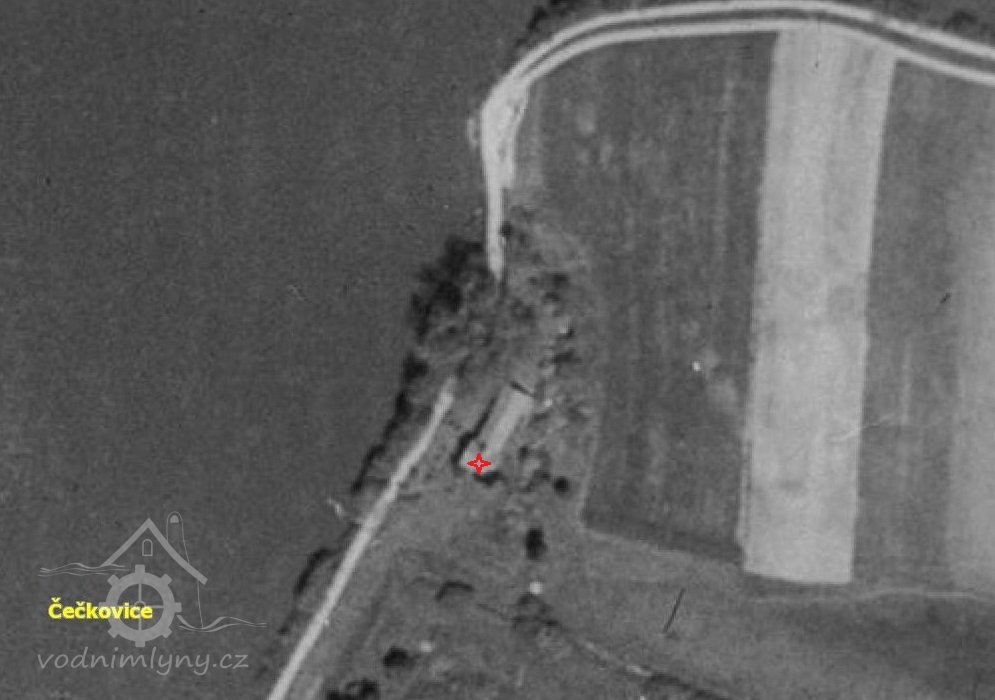 Dle stabilního katastr menší obdélníková budova ze spalného materiálu postavená kolmo na hráz rybníka. Později, po přeměně mlýna na rybárnu, bylo k původní budově mlýna přistavěno do pravého úhlu nové křídlo probíhající souběžně s hrází rybníka (viz letecký snímek Cenia z roku 1949).