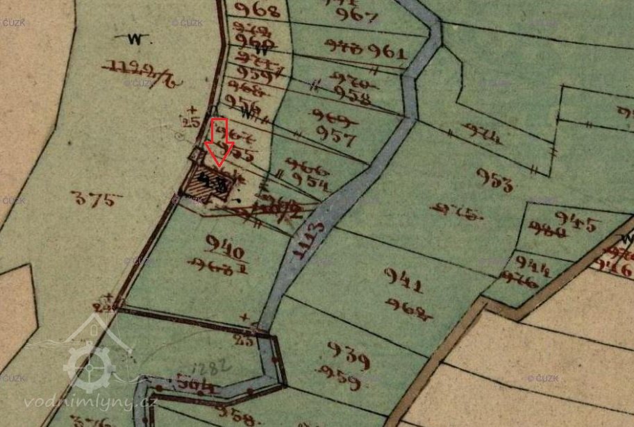 1930 – 1 vodní kolo na vrchní vodu, hltnost 0,13 m3/s, spád 4 m, výkon 4,6 HP
