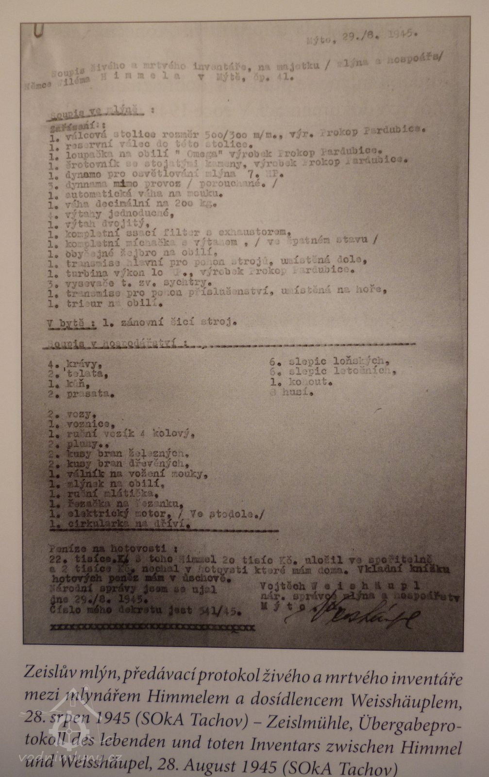 1945 – soupis zařízení a inventáře v předávacím protokolu – viz ikonografie