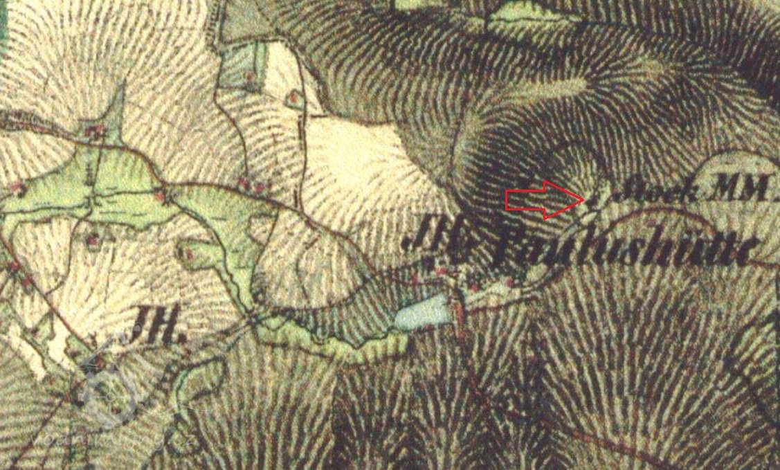 asi 4,2 JZ od obce Obora, asi 400 m SV od hráze Pavlovohuťského rybníka