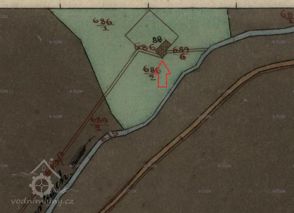 Mlýn měl stát asi 400 m od hráze Pavlovohuťského rybníka při Sklářském potoce, náhon k němu začínal pod výše položeným mlýnem Dolní Stocmühle I.