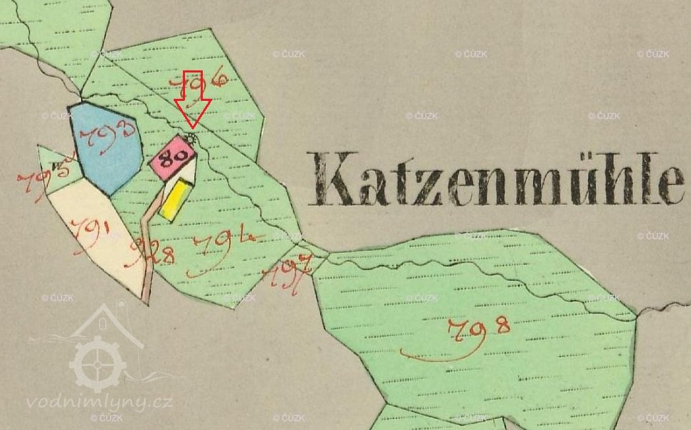 Dle sčítání obyvatel z roku 1869 měl mlýn čp. 64, mlynářem zde tehdy byl Johann Steinhauser, žil zde s manželkou Annou, synem Johannem Adamem a dcerami Katharinou, Annou, Margarethou a Marií. Hospodářství mlýna obsahovalo 2 krávy.