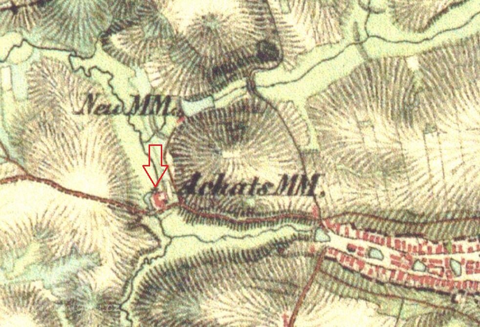 samota, asi 500 m západně od sochy sv. J. Nepomuckého na západní okraji obce Hošťka