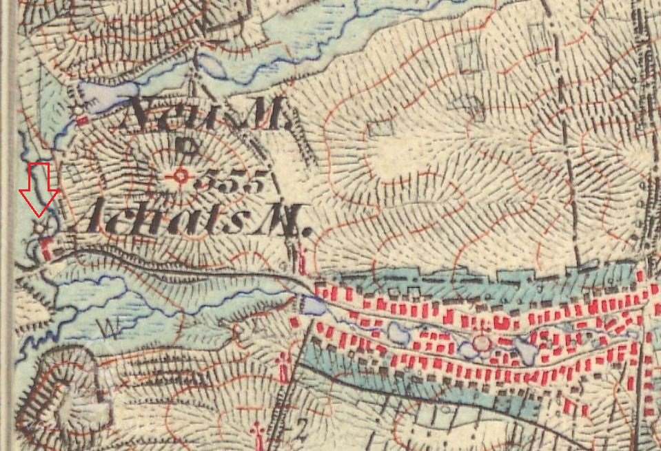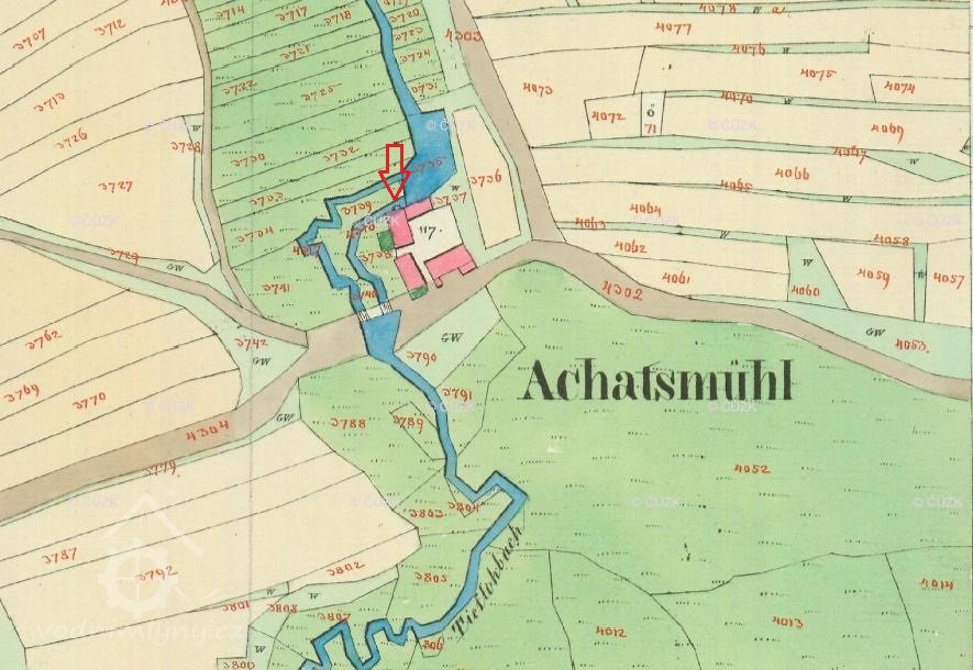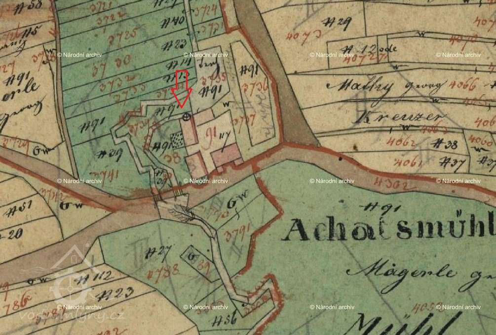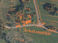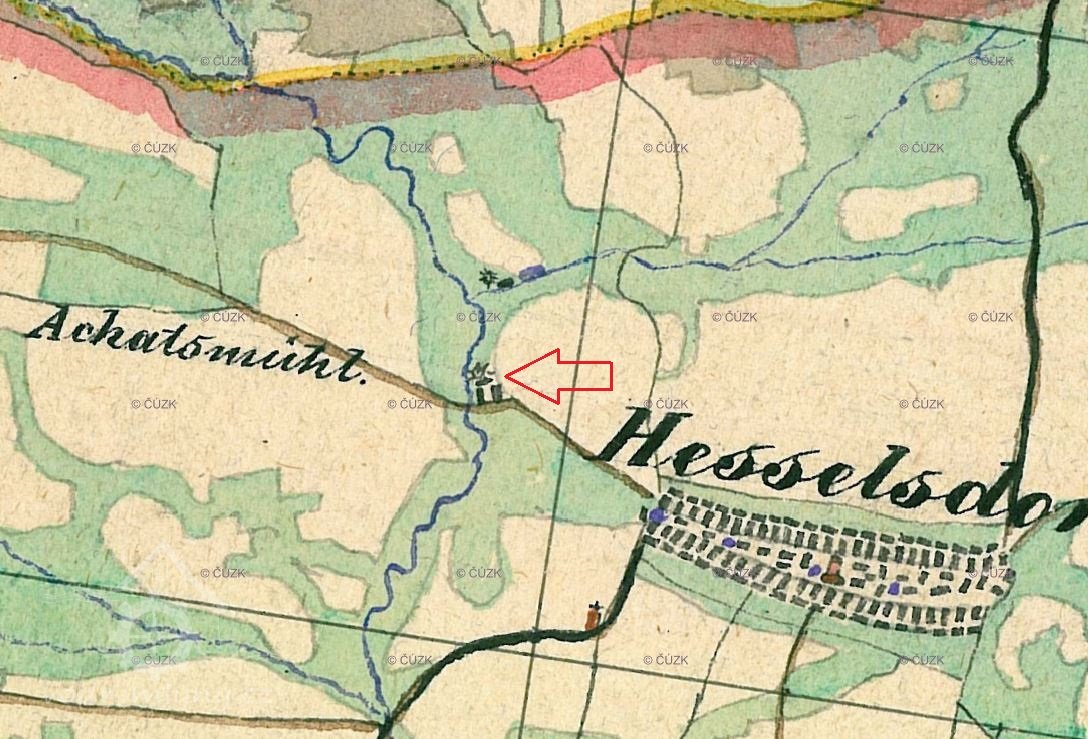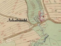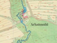 V berní ruce z roku 1654 je zde zapsán mlynář Georg Müller. Dalším zdejším mlynářem byl Achacius Schmied, jehož neobvyklé křestní jméno se zachovalo v názvu mlýna.