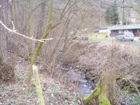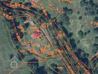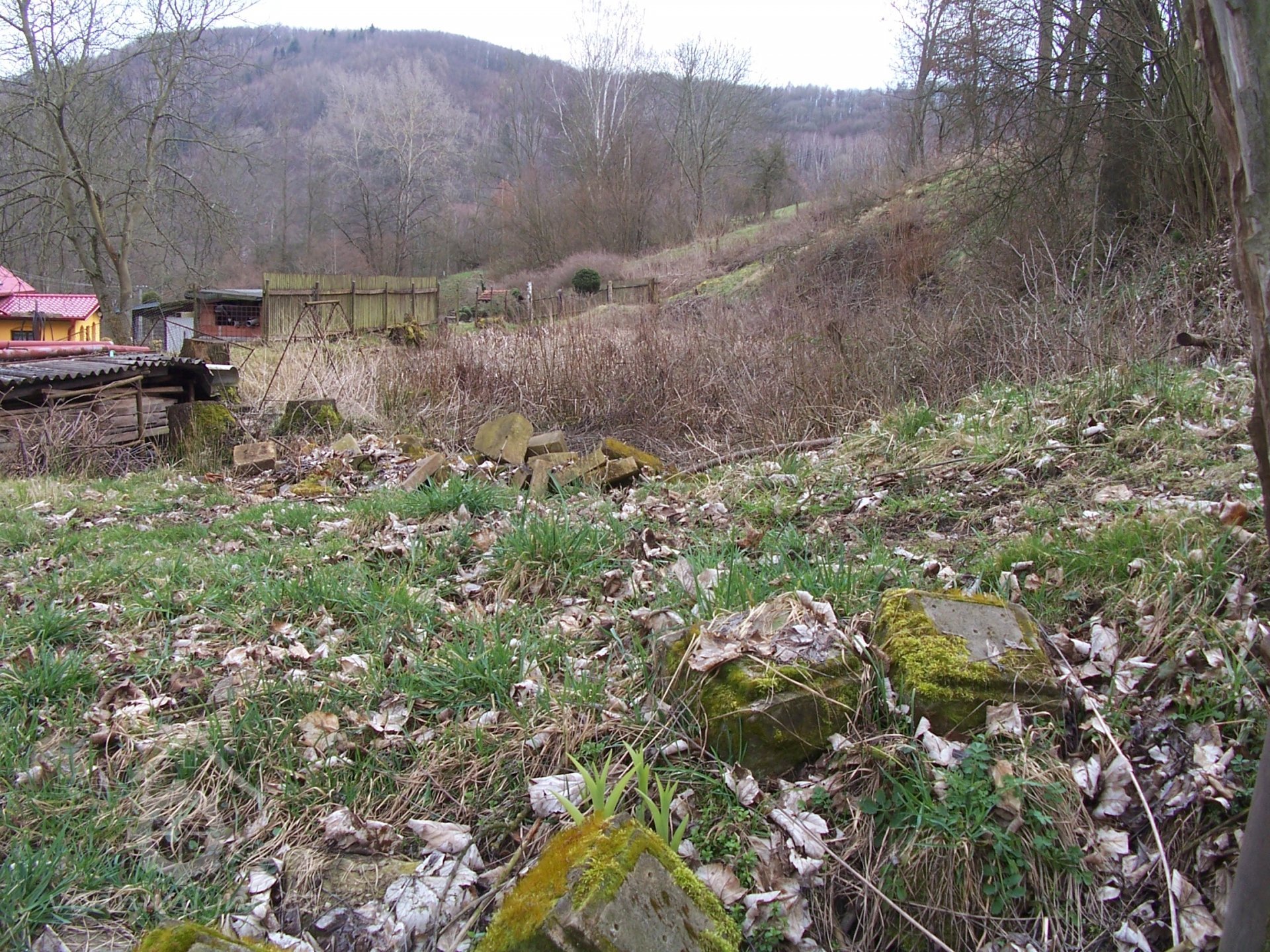 Zbořený mlýn. Na základech jedné z budov postaven rekreační domek.