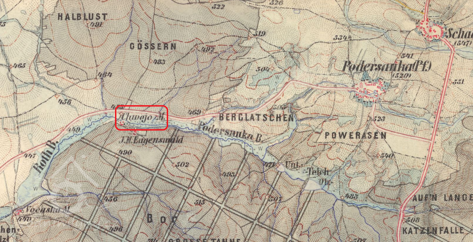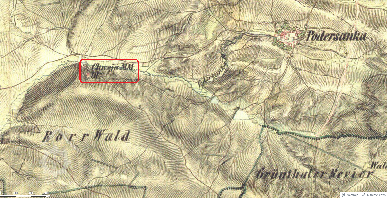3 km západně od kostela sv. Ondřeje v Podbořánkách