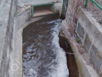 Náhon opatřený betonovým hrazením břehů se systémem stavidel.