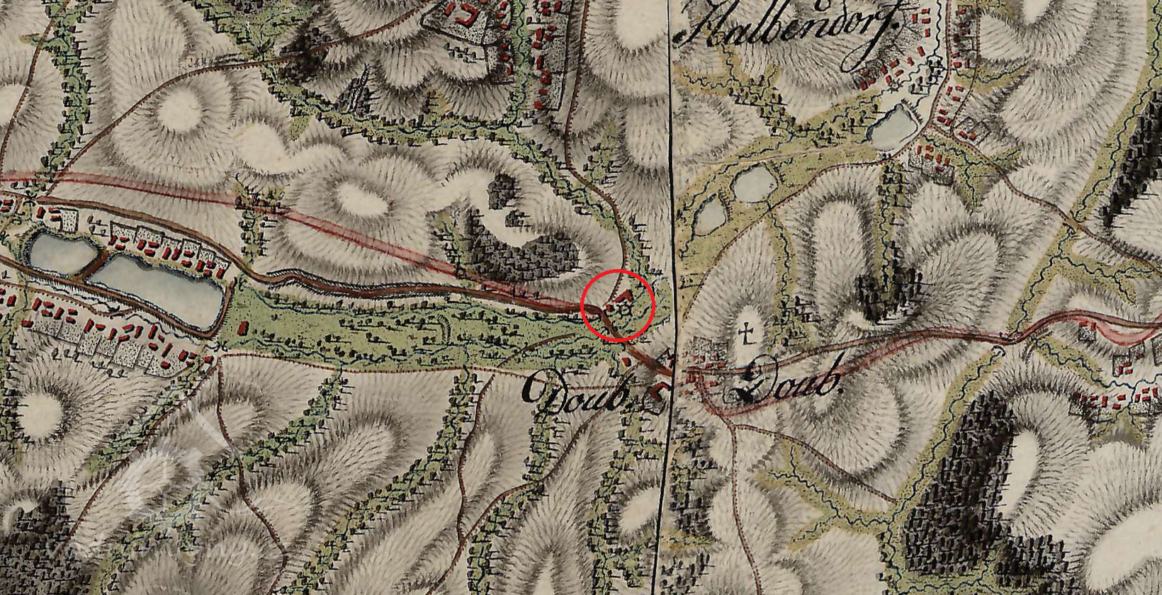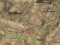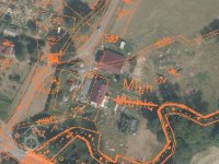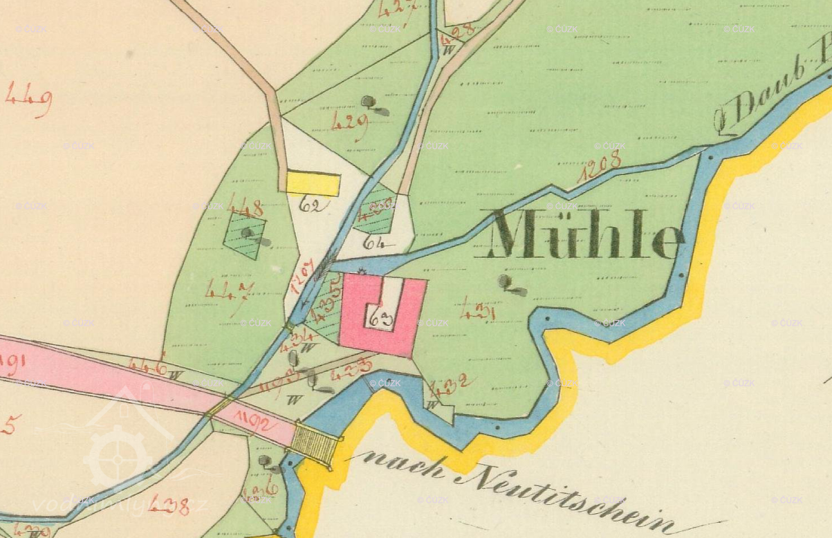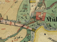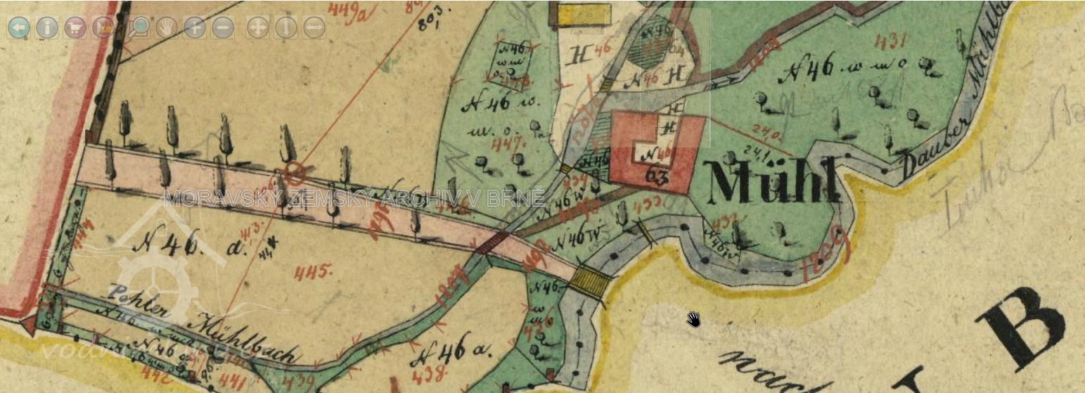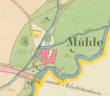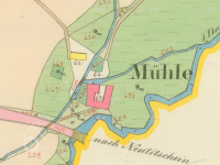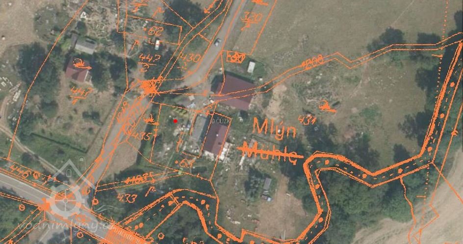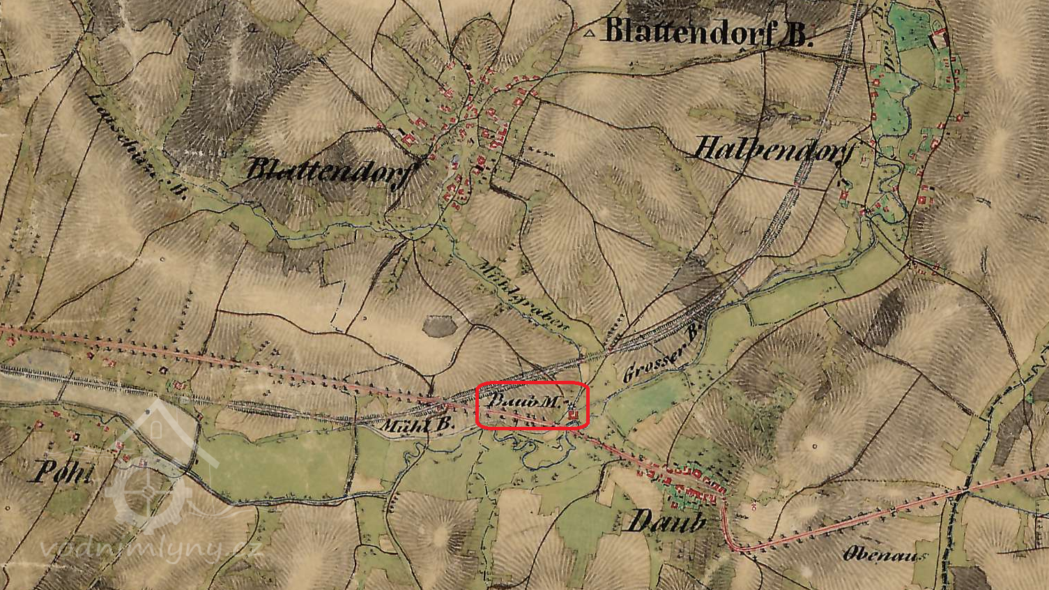 Mlýn s pilou na samotě jižně od Blahutovic, dnes z větší části zbořený.