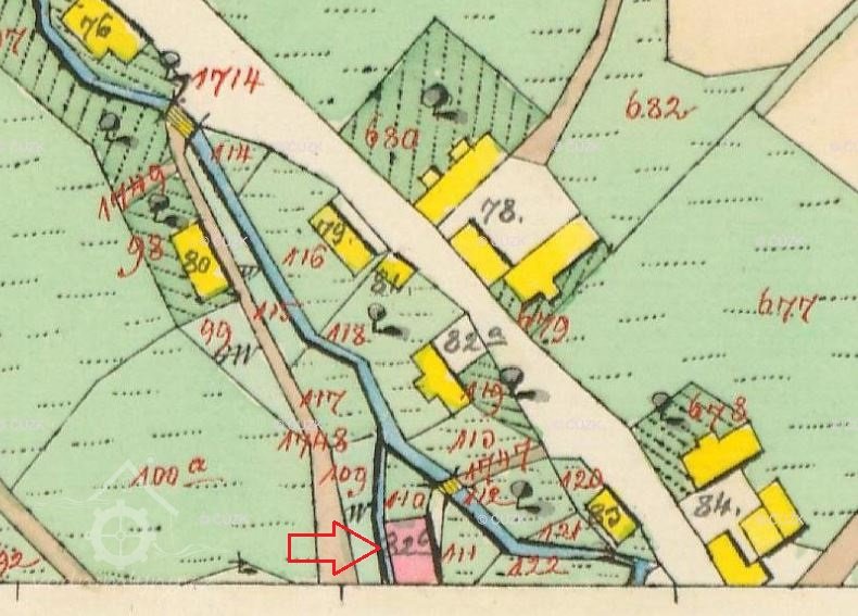 Dle vyobrazení na mapách stabilního katastru zděná budova s půdorysem obdélníku. Později byla na západní straně budovy provedena do pravého úhlu přístavba.