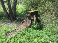 2020 - Bývalé mlýniště slouží k rekreaci, z původních staveb zůstal zřejmě kamenný sklípek ve svahu a část betonového stavidla.