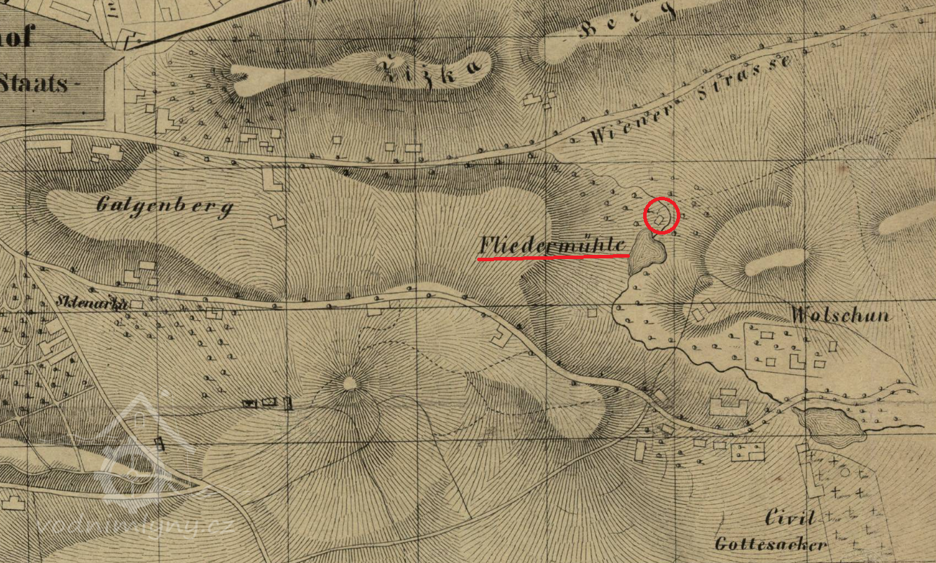 Mlýn s průtočným rybníkem pod zámečkem Bezovka, oblíbené výletní místo Pražanů. Roku 1875 zcela přestavěn na zahradní restauraci.