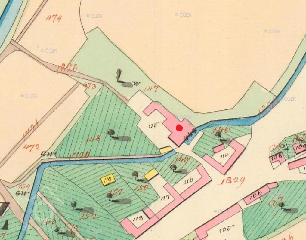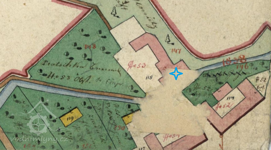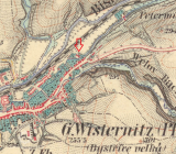 Mlýn dohledán na mapách I. vojenského mapování (JV)