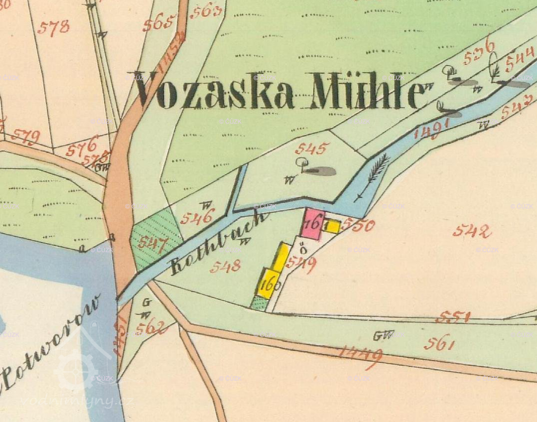 Popis1930: 1 kolo na svrchní vodu, hltnost 0,059 m3/s, spád 4,9 m, výkon 2,5 HP