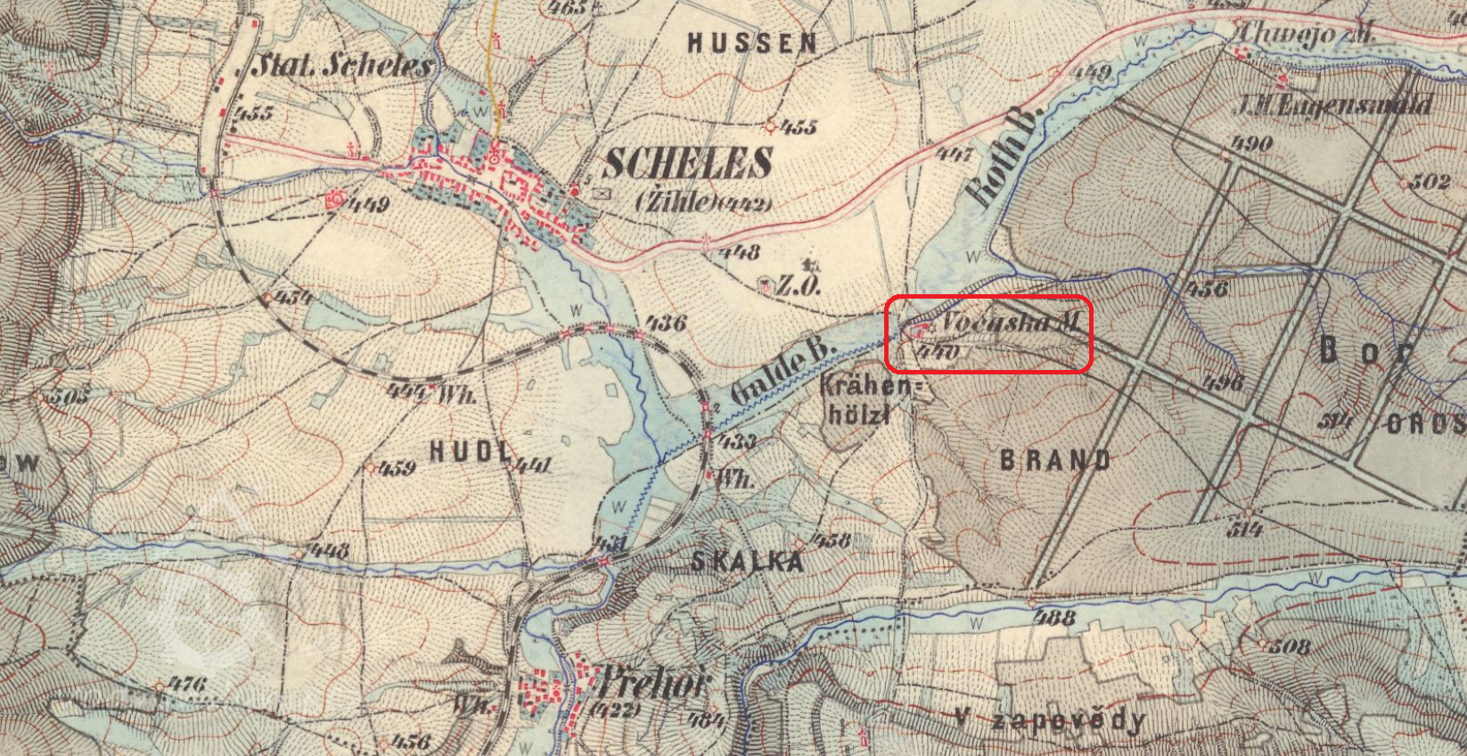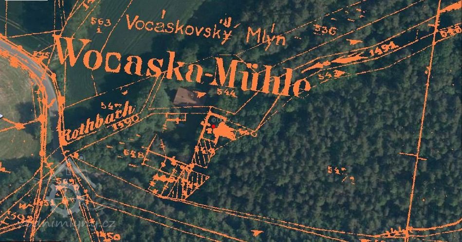 Mlýniště na samotě na okraji lesa východně od města. Přestavěná hospodářská budova slouží k rekreaci.