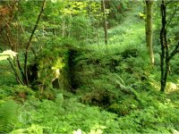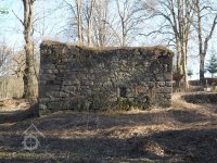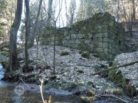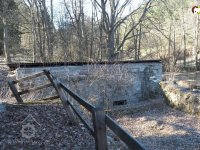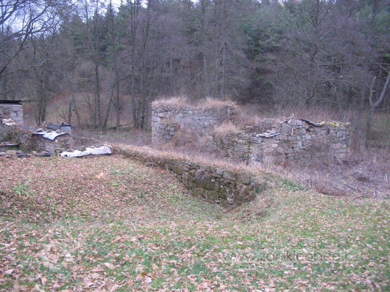 Zadní část areálu v prudkém svahu nad levým břehem potoka tvořily dvě budovy z lomového kamene.