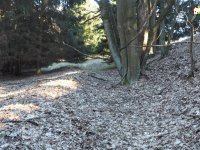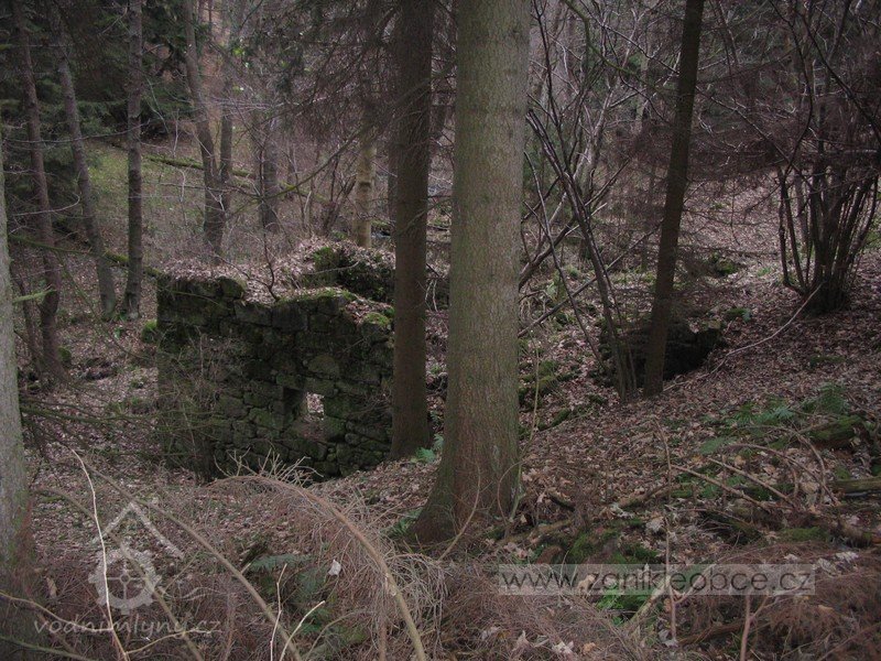 Zadní část: Voda byla přiváděna mlýnským náhonem zleva do lednice na severní straně hlavního severního mlýnského objektu s kolem na svrchní vodu a následně spádem odtékala do potoka.
