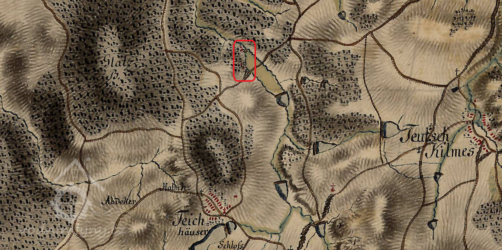 Rábův mlýn je prvně zachycen na mapě 1. vojenského josefského mapování z let 1764-1768.