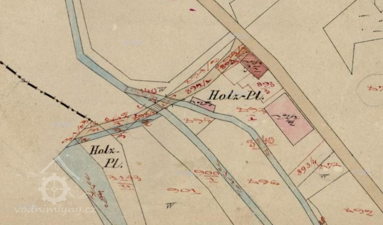 Při pravé straně pravostranného náhonu Mühlbach, který začínal nedaleko soutoku potoka Mazák a Ostravice.