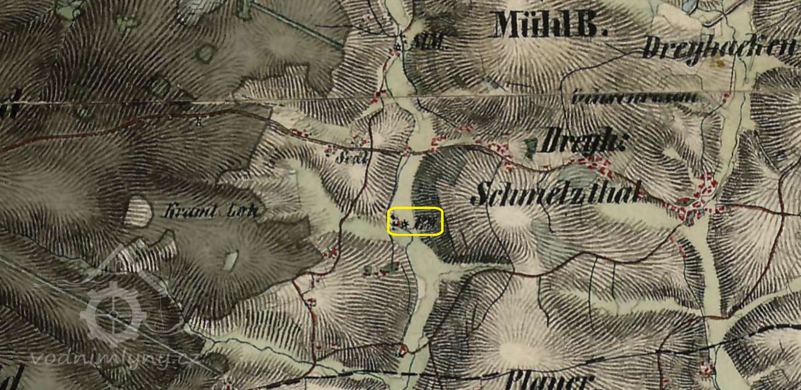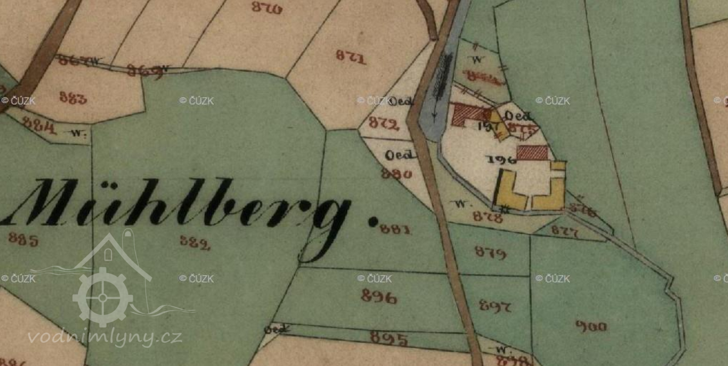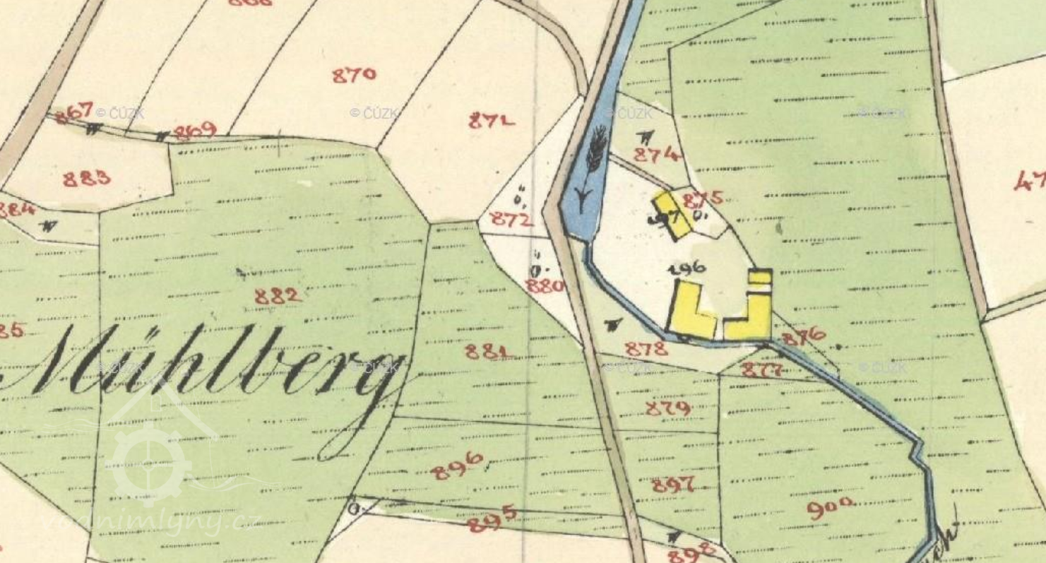 Popis1930: 1 kolo na svrchní vodu, hltnost 0,096 m3/s, spád 4,2 m, výkon 3,5 HP