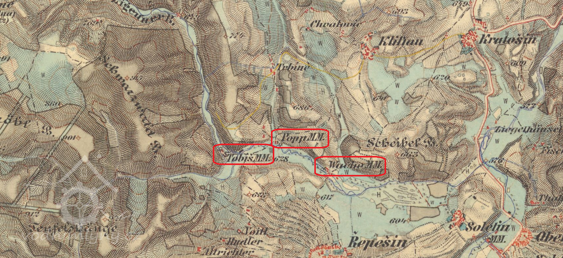 Váchův mlýn, U Partlů; Wacho Mühle, Lether Mühle
