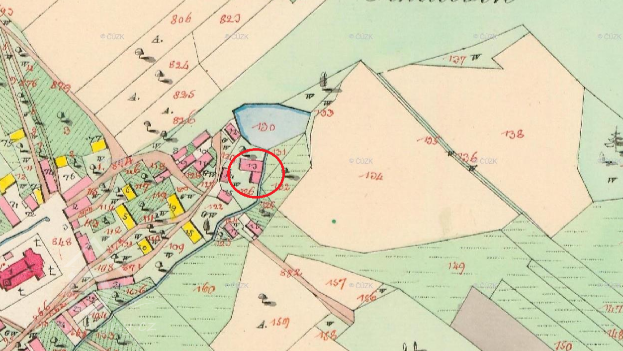 Mlýn vyznačen na mapě I. vojenského mapování.