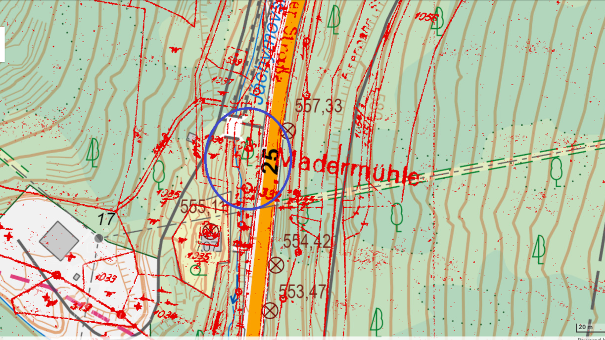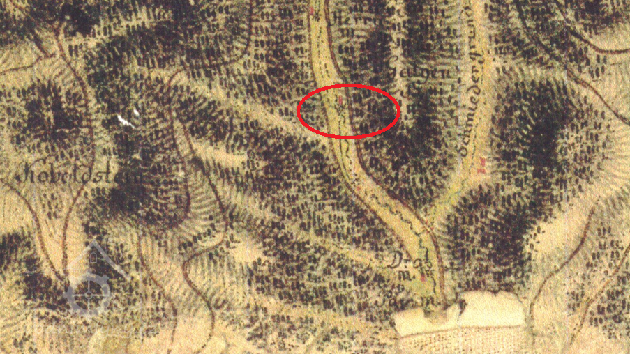 Stával v prostoru pod čističkou odpadních vod, u které se také dochoval zbytek náhonu. Tento mlýn byl na Jáchymovsku jediný, který měl vantroky (přívod vody z náhonu k mlýnskému kolu) přes koryto potoka.