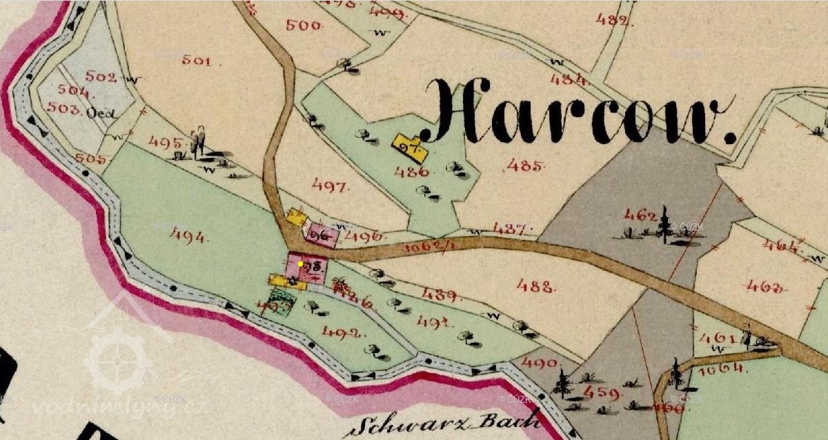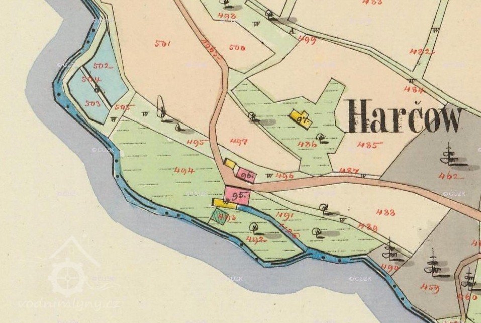 PopisV r. 1930 zde bylo 1 kolo na svrchní vodu, průtok 0,075 m3/s, spád 6,5 m, výkon 4,5 k.