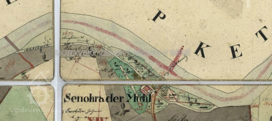 Popis1958 Oslavanská elektrárna instalovala na mlýnském náhonu malou turbínku, zásobující elektřinou chaty a býv. mlýn.