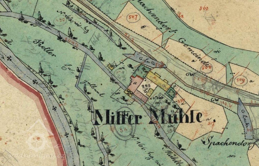 Mlýn se nachází pod hladinou vodní nádrže Slezská Harta.