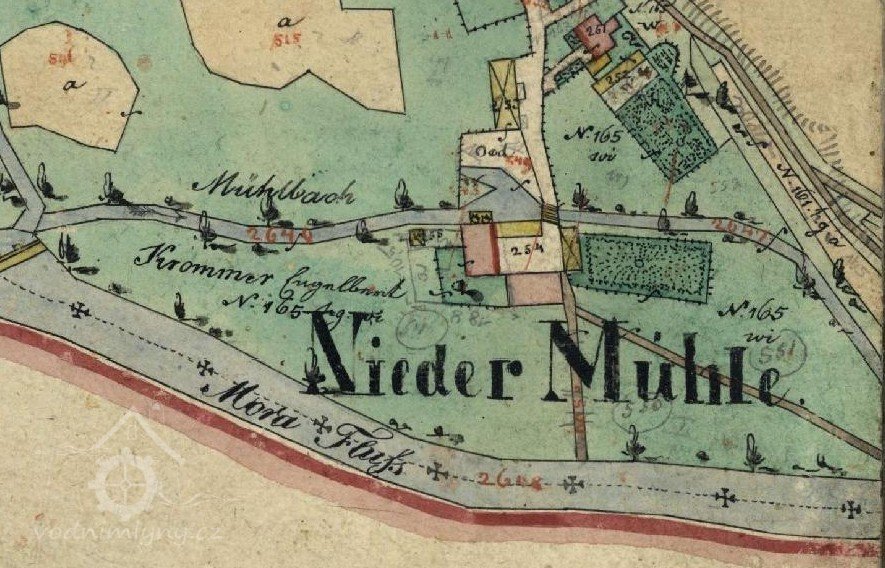 PopisV r. 1930 zde bylo 1 kolo na střední vodu, průtok 1,15 m3/s, spád 1,84 m, výkon 15,5 k.