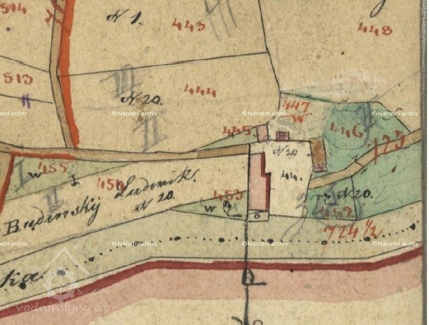 V r. 1838 vlastnil mlýn a pilu Ludvík Budínský.
