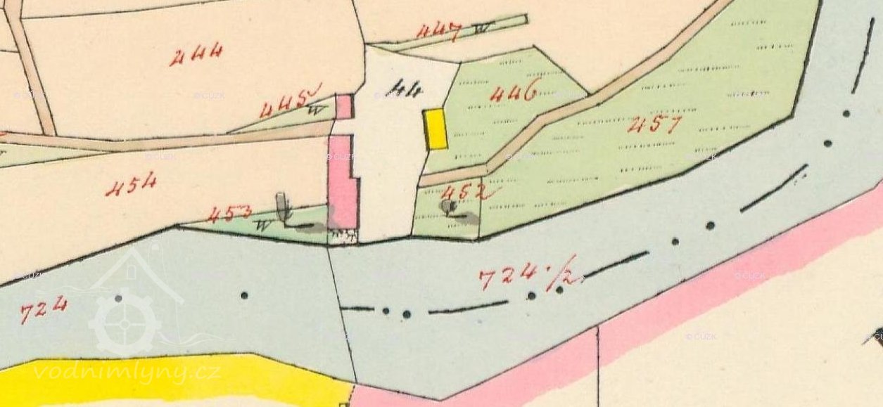 PopisV r. 1930 zde bylo 1 kolo na spodní vodu, průtok 0,13 m3/s, spád 1,1 m, výkon 9,4 k.