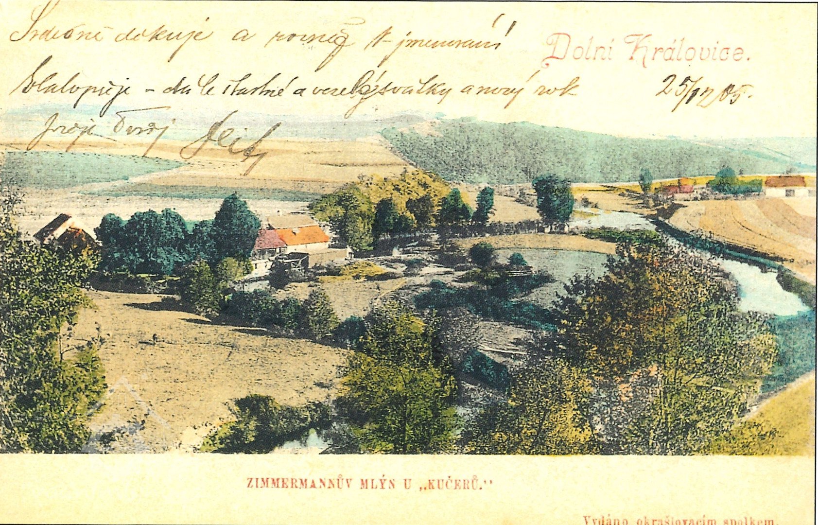 1905 původní malý mlýn se šindelovou střechou zakoupil František Kouba z Těchobuze u Pacova