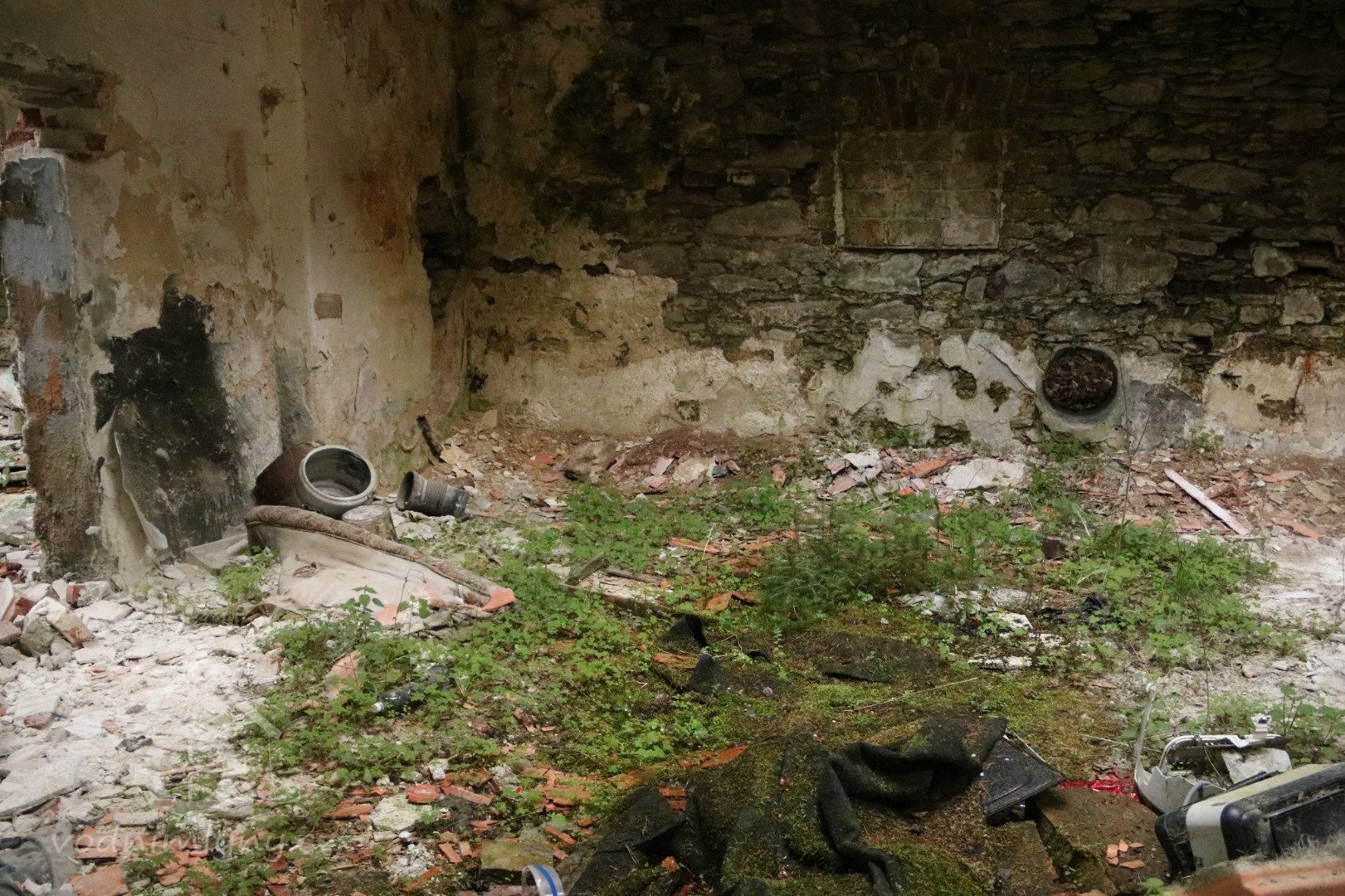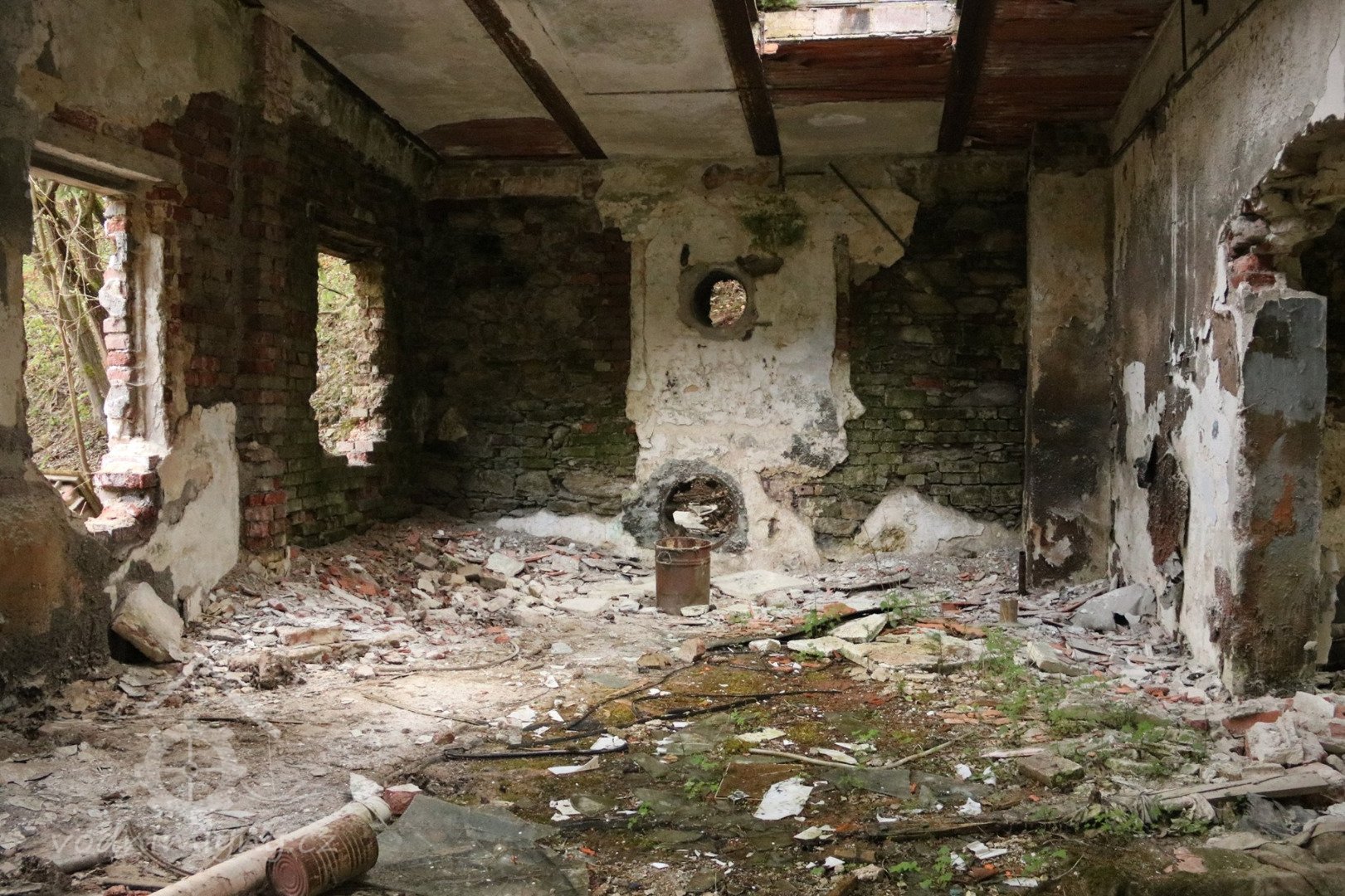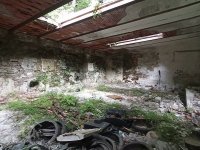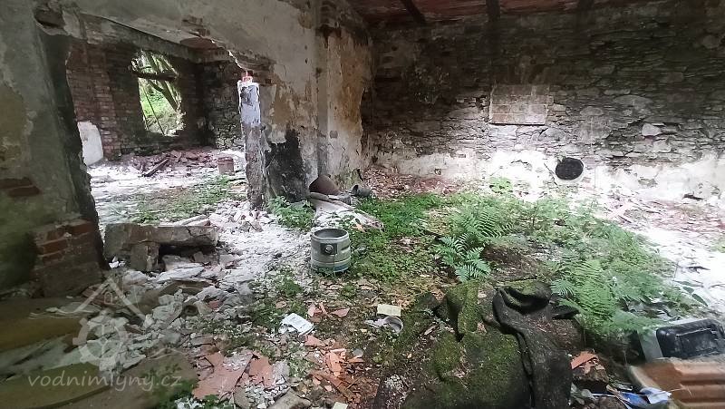 Střecha a hrázděné zdivo renesančního objektu se propadly do interiéru mlýna a destruovaly také stropy. Mlýnice je bez zastřešení a stropů.