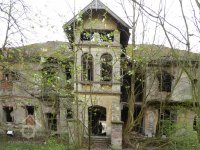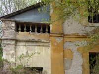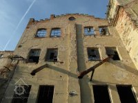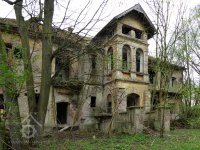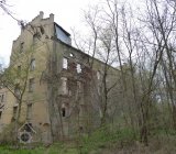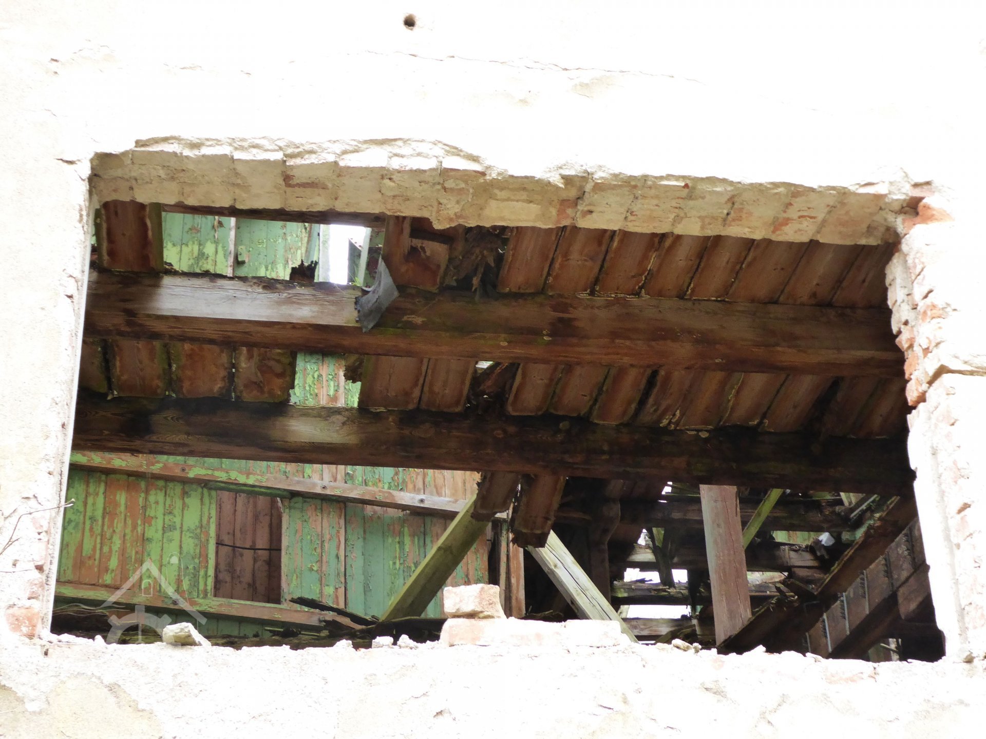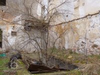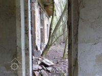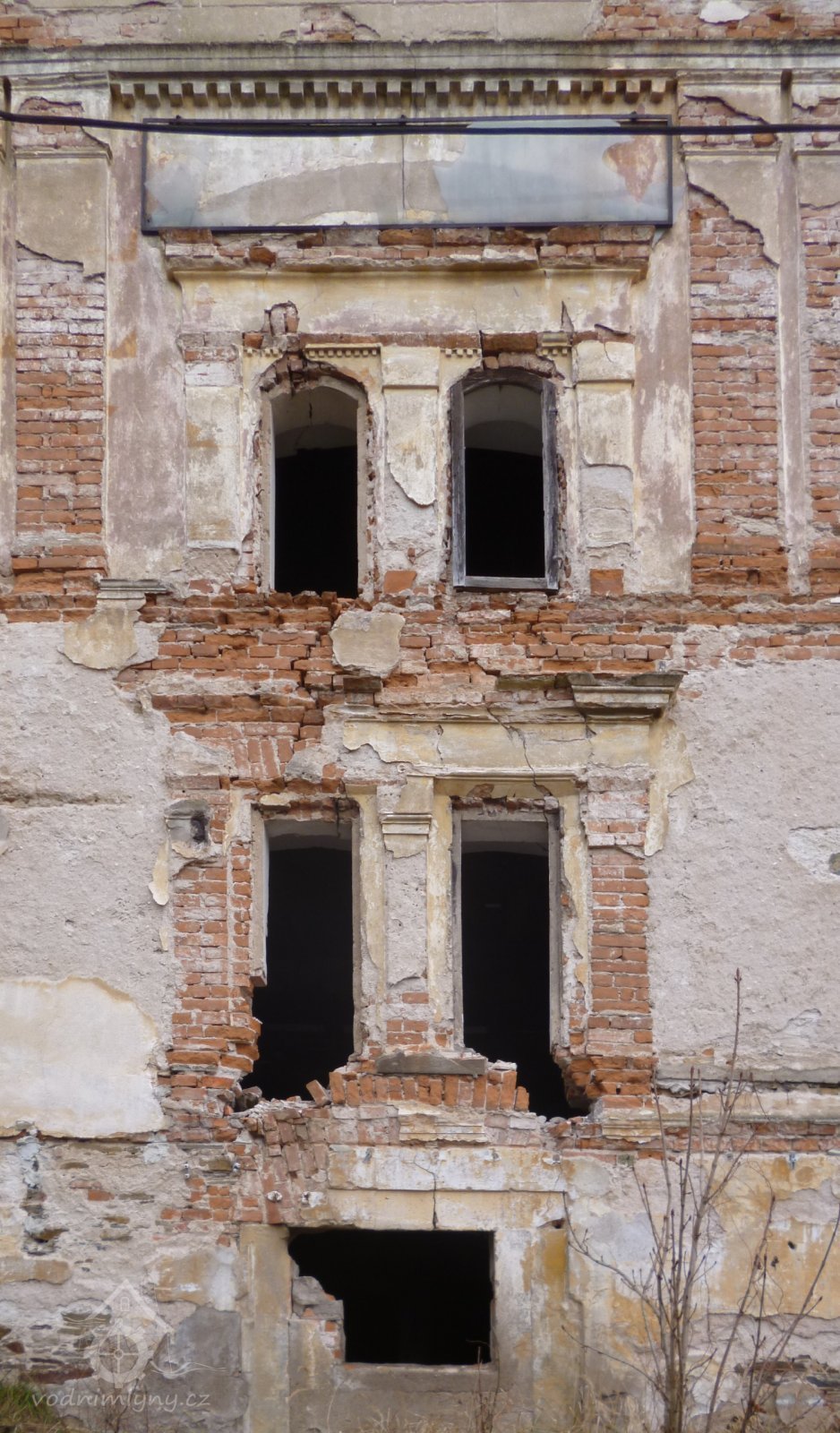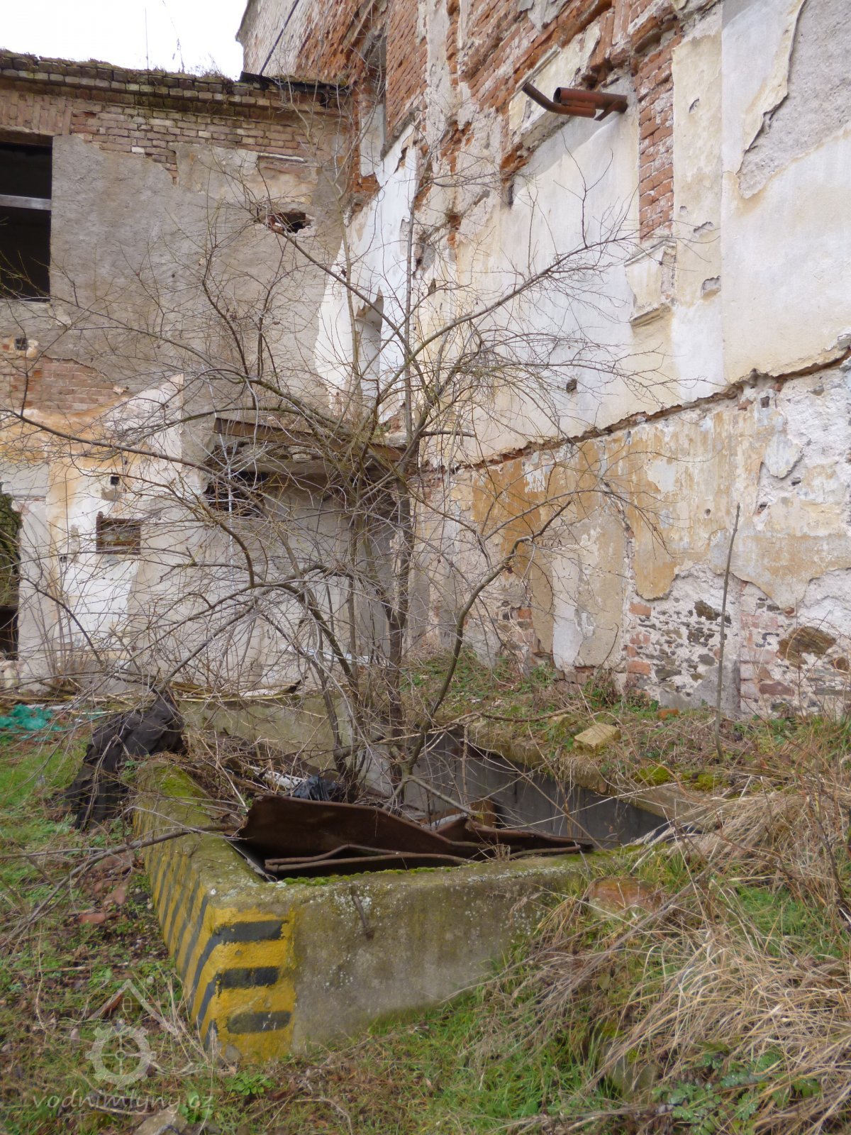 Se mlýnem spojená obytná budova - vila je v lepším stavu. Má střechu, schodiště, okna a dveře vylámaná (stav 04 2018)